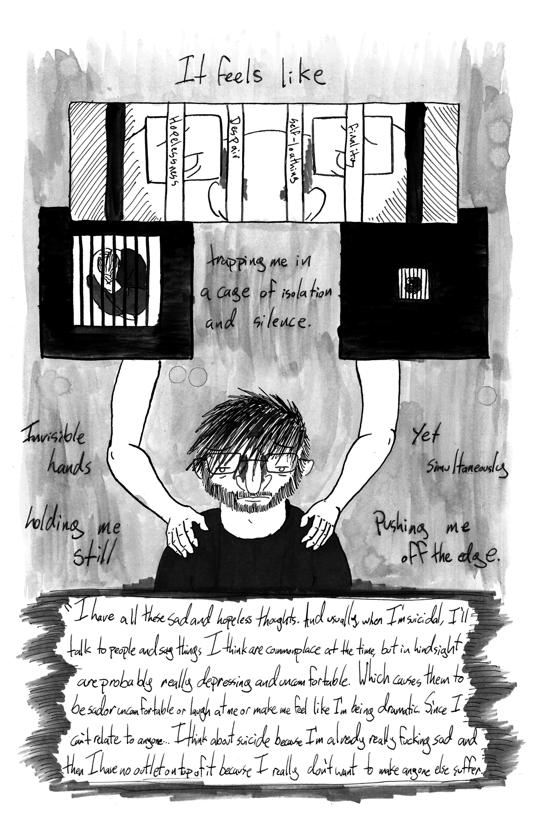 Spiral King Comics #10 is about suicidal depression. It is meant to help those who experience it deal with it, and those who don't to understand it.